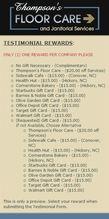 Thompson's Floor Care to other potential clients.